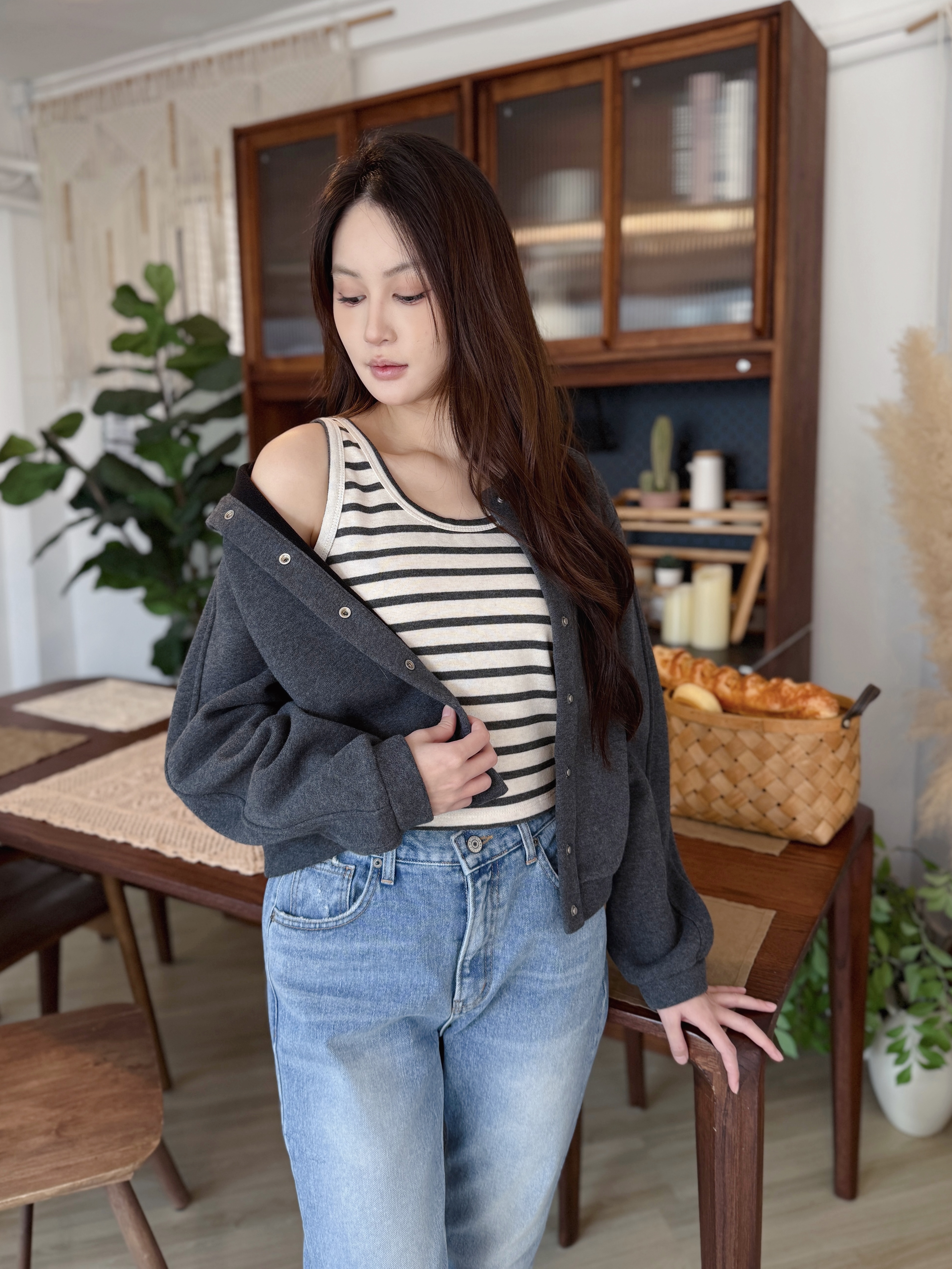 🇰🇷 間條背心棒球Set (碳灰色)